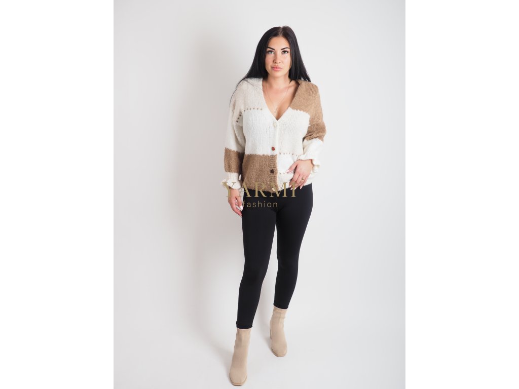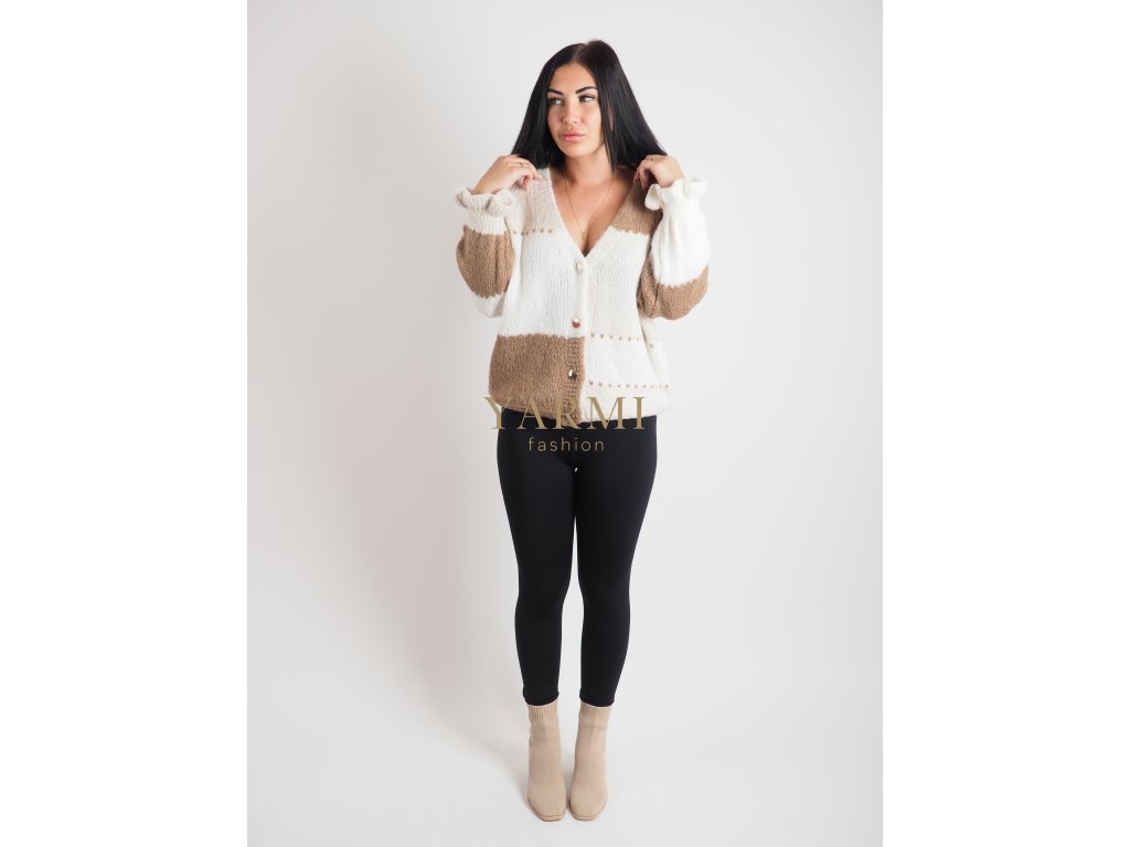 Dámsky béžovo-biely sveter na gombíky