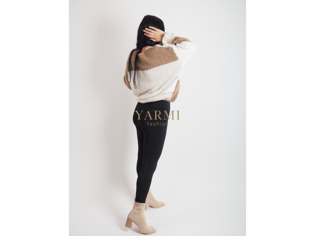 Štýlový a hrejivý sveter v kombinácii béžovej, hnedej a krémovej farby. Voľnejší strih a zapínanie na gombíky zaručujú pohodlie aj eleganciu. Skvelo sa hodí k rifliam, legínam alebo sukniam. Perfektný na jeseň – keď sa chceš cítiť útulne a zároveň vyzerať štýlovo.