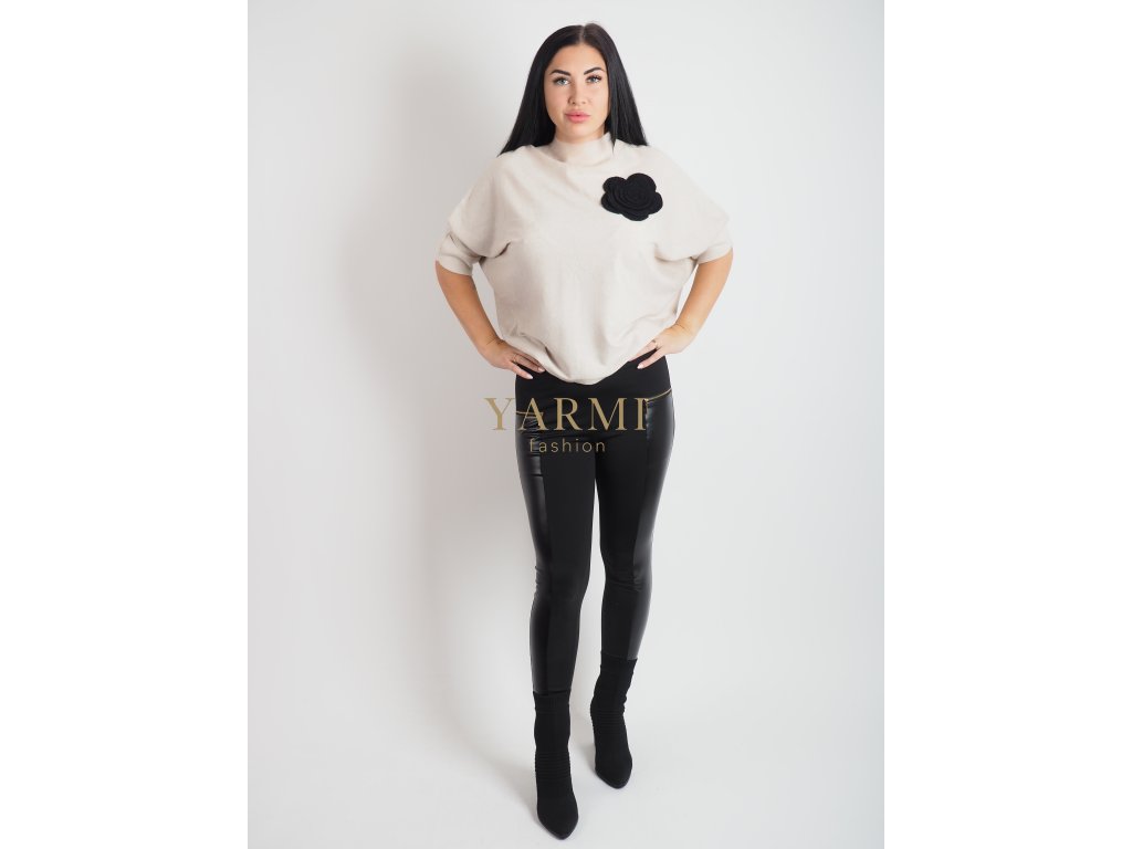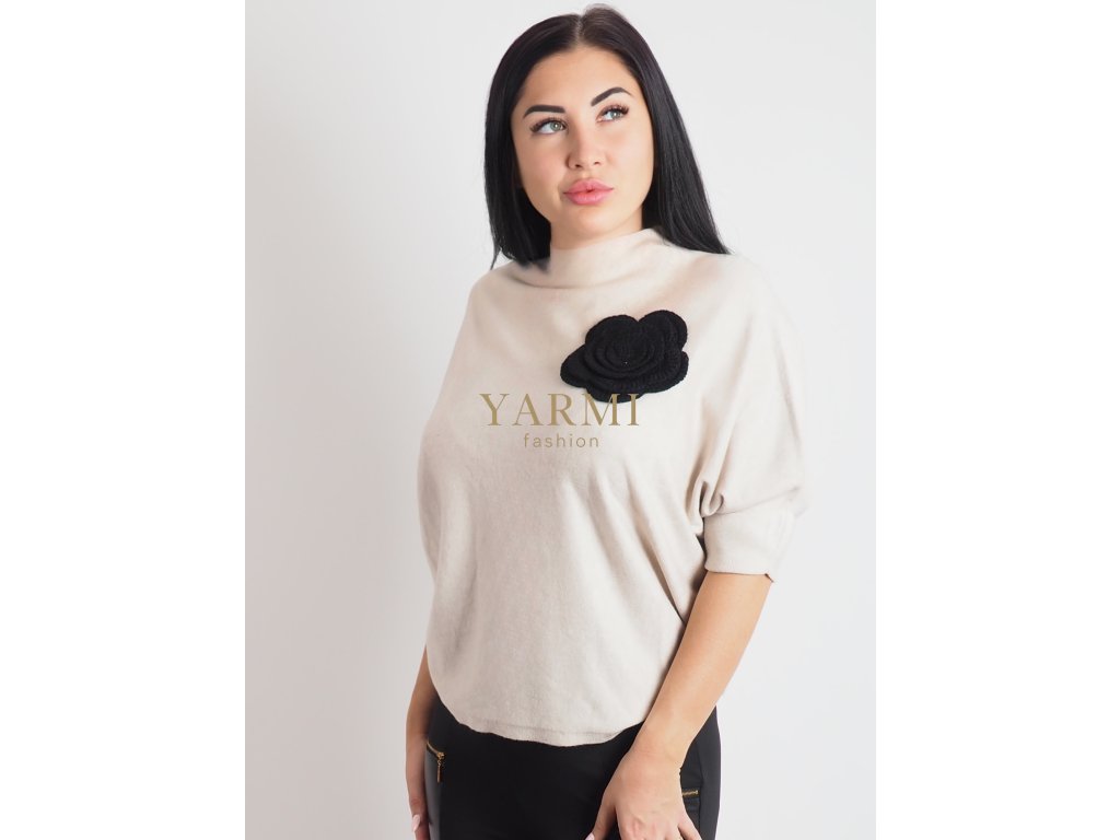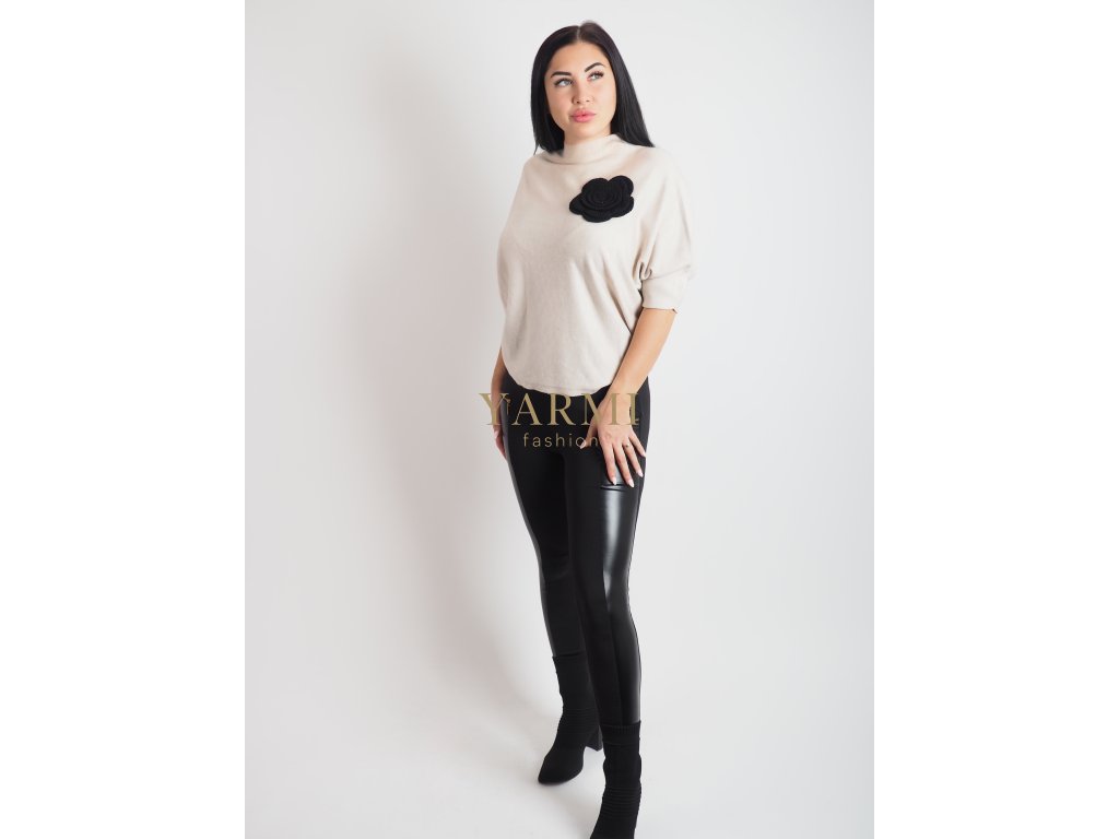 Dámsky béžový sveter s čiernou aplikáciou kvetu