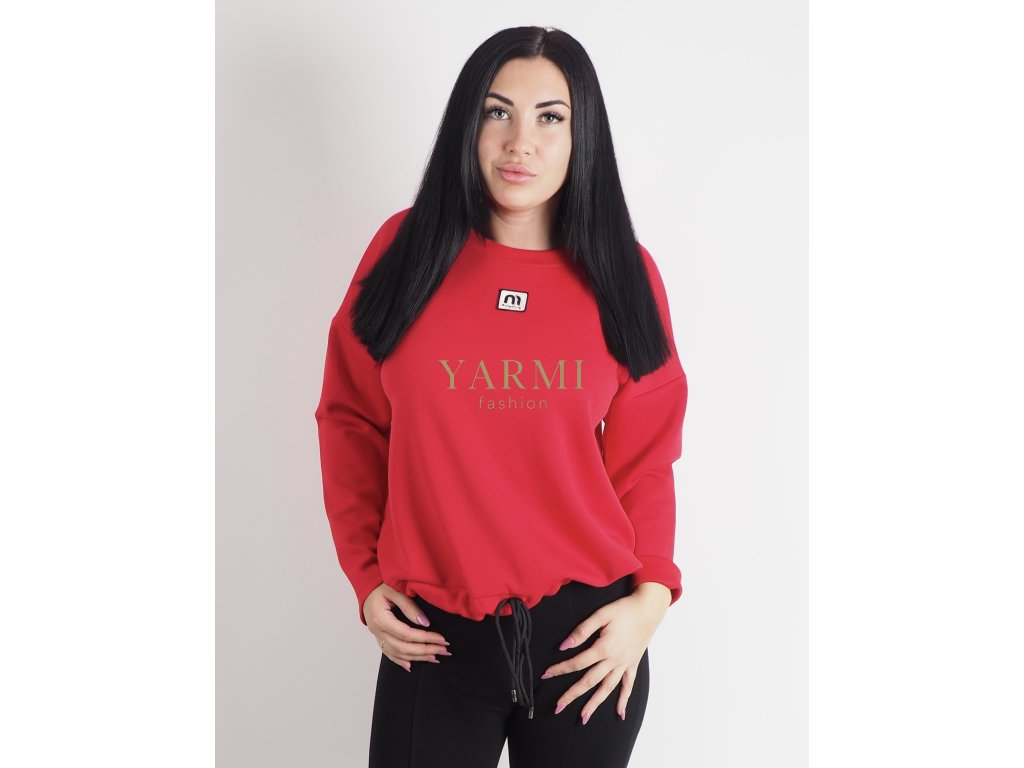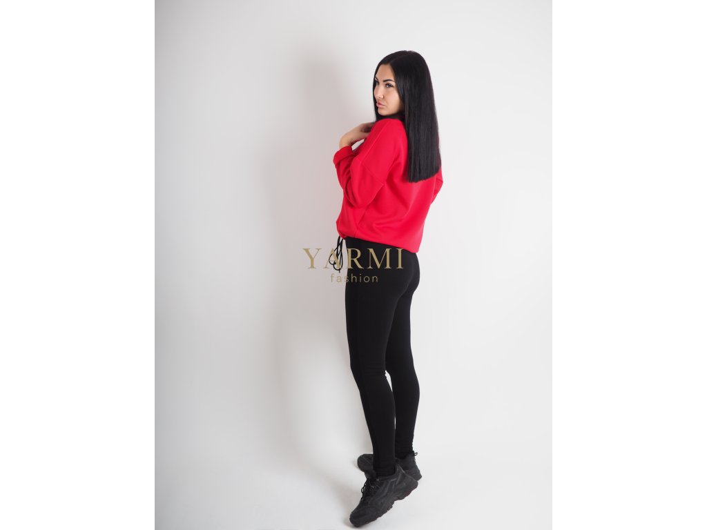 Pohodlná dámska červená mikina v klasickom strihu so sťahovaním v spodnej časti.