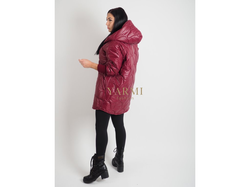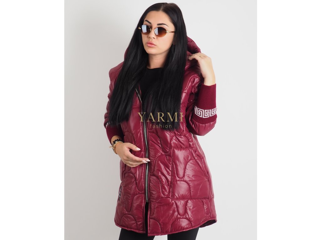 Trendová dámska bunda v bordovej farbe s kapucňou.