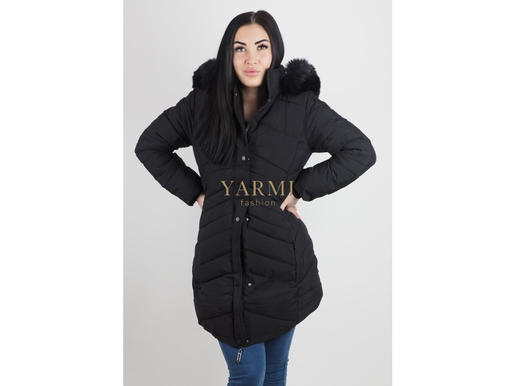 Bunda má predĺžený strih, ktorý lichotí postave a poskytuje lepší tepelný komfort. Je zateplená a má vnútornú podšívku, vďaka ktorej príjemne hreje počas zimy. Zapínanie na zips zabezpečuje pohodlné obliekanie a kapucňa s kožušinou chráni pred vetrom a chladom. Prešívaný dizajn pomáha opticky tvarovať siluetu.