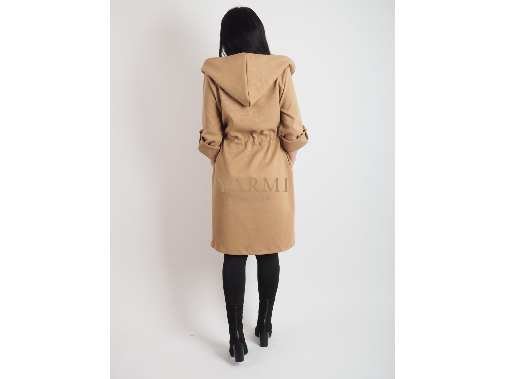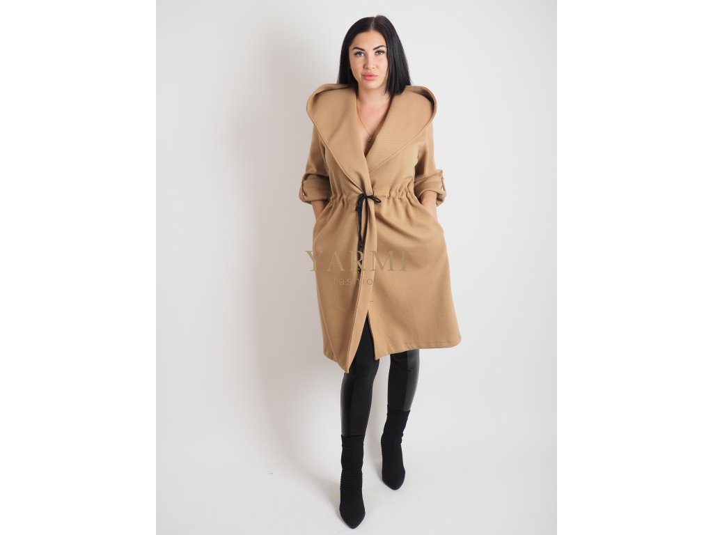 Štýlový kabát v príjemnom camel odtieni s viazaním v páse, ktoré krásne zvýrazní postavu. Mäkký, pohodlný materiál a moderný strih s golierom zaručujú komfort aj eleganciu. Ideálny na prechodné obdobie – pre ženy, ktoré milujú jednoduchú, ale výraznú módu.