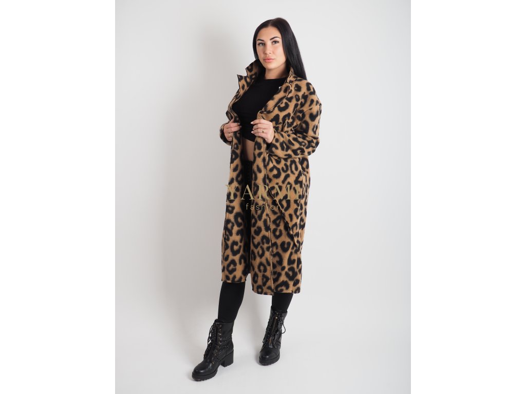 Trendový dámsky kabát s elegantným leopardím vzorom, ktorý nikdy nevyjde z módy. Kvalitný materiál, klasický strih a gombíkové zapínanie zaručujú komfort aj štýl. Perfektný na prechodné obdobie – pre ženy, ktoré sa neboja vyniknúť.