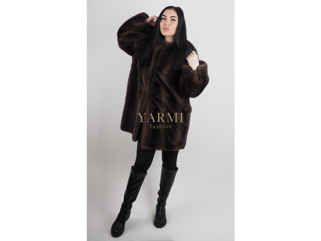 Luxusný dámsky kožuch v elegantnej hnedej farbe s jemným a hrejivým kožúškom, ktorý poskytuje vysoký komfort počas zimných dní. Model má voľnejší strih a rozšírené, voľne strihané rukávy, ktoré dodávajú kožuchu moderný a sofistikovaný vzhľad. Nadčasový dizajn umožňuje jednoduché kombinovanie s elegantným aj každodenným outfitom, vďaka čomu je kožuch ideálnou voľbou na bežné nosenie aj spoločenské príležitosti. Zapínanie je na háčiky. Sedí na M/L/XL, podľa typu postavy.