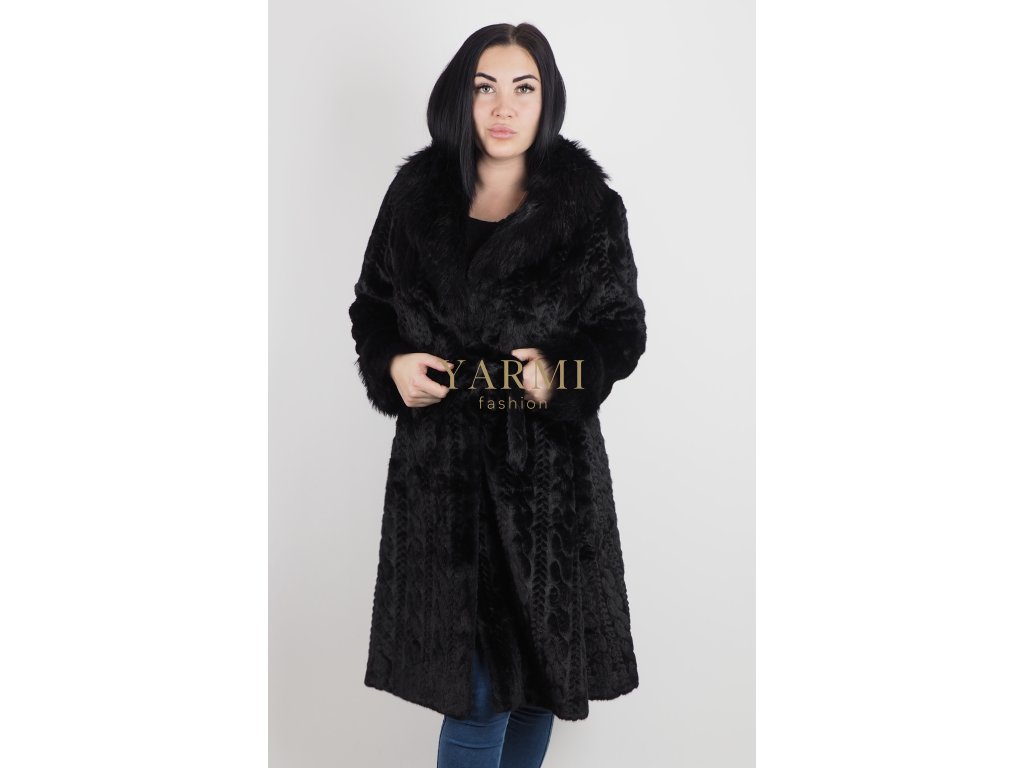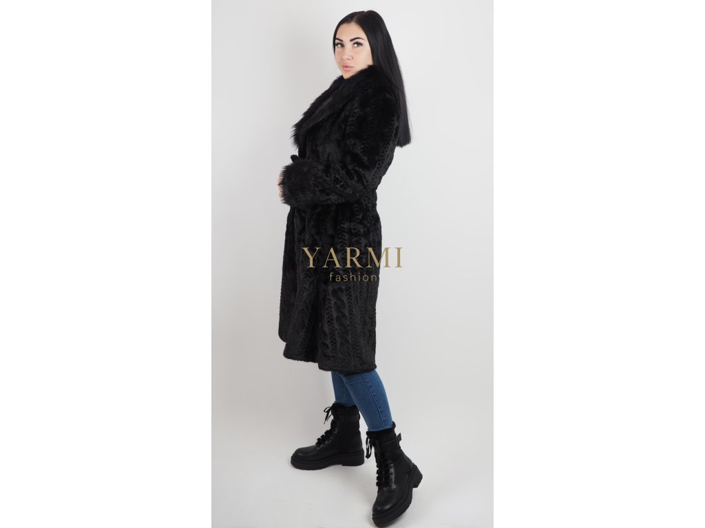 Dámsky kožuch Black Elegant je vyrobený z jemnej kožušiny s dekoratívnou štruktúrou, ktorá dodáva modelu luxusný vzhľad. Kožuch nemá podšívku, vďaka čomu si zachováva prirodzenú ľahkosť materiálu. Zapínanie je riešené kovovými háčikmi, ktoré sú diskrétne a elegantné. Súčasťou modelu je opasok, ktorý umožňuje prispôsobiť strih postave a zvýrazniť ženskú siluetu. Dlhší strih poskytuje dobrú ochranu pred chladom a je vhodný na elegantné aj každodenné nosenie počas zimy.
