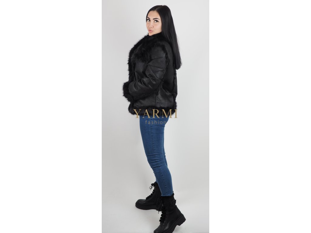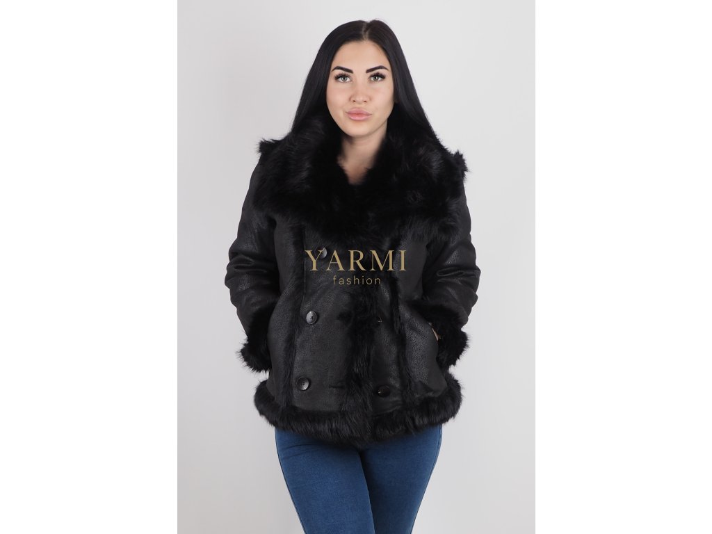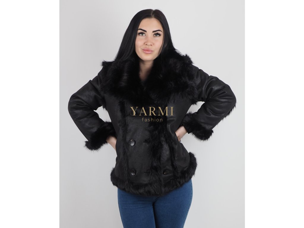 Elegantný dámsky kožuch v čiernej farbe s kožušinovou podšívkou, ktorý poskytuje výnimočné teplo, pohodlie a luxusný vzhľad počas zimných dní.