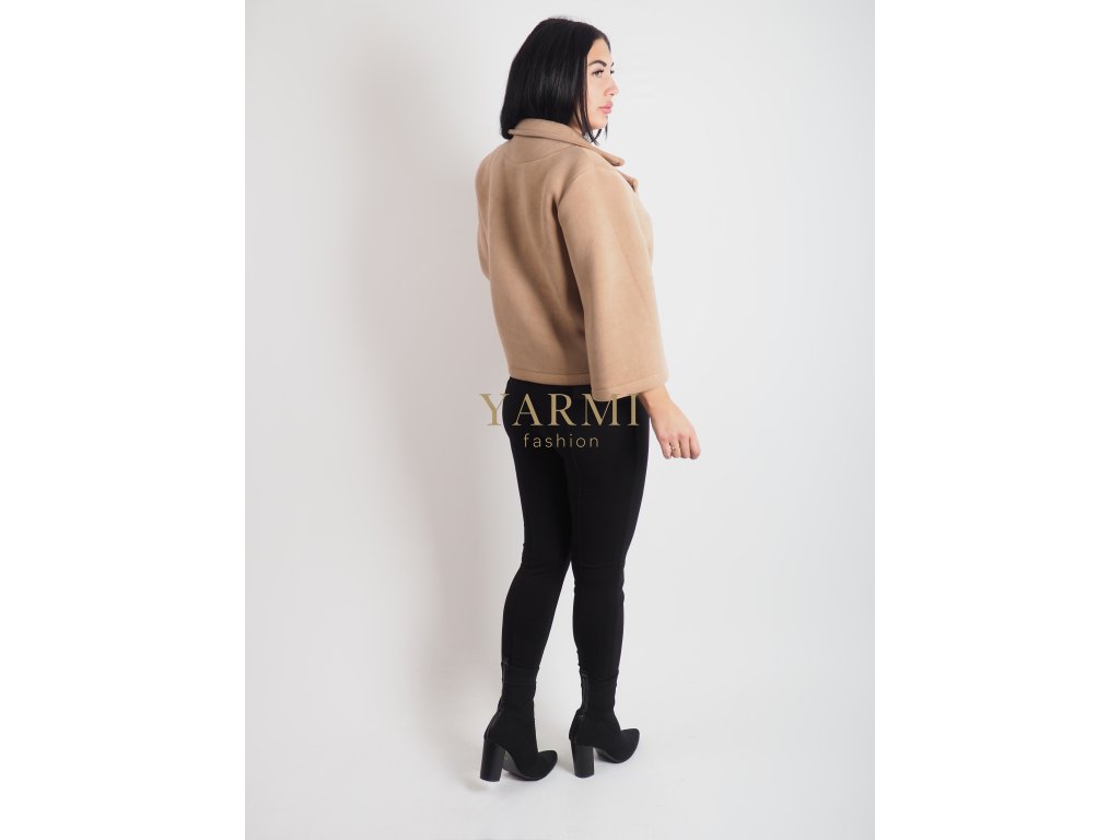 Dámsky kabát v minimalistickom dizajne s klasickým golierom a gombíkovým zapínaním. Krátky strih zvýrazňuje postavu a dodáva outfitu moderný vzhľad. Príjemný, kvalitný materiál zaručuje pohodlie pri nosení. Ideálny na prechodné obdobie – dokonale doplní elegantný aj ležérny štýl.