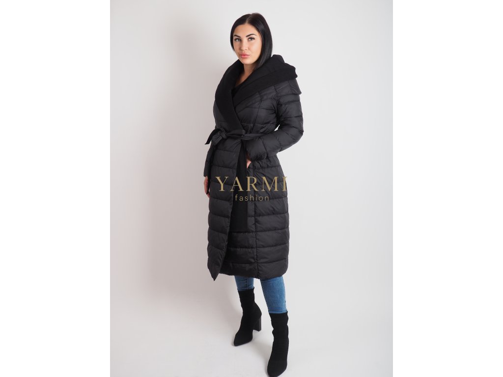 Dlhý dámsky zimný kabát v čiernej farbe spája eleganciu s pohodlím. Výrazný golier, viazanie v páse a kvalitné prešívanie zvýraznia ženskú siluetu a zároveň ochránia pred chladom. Perfektný kúsok do zimného šatníka pre ženy, ktoré milujú štýl a komfort.