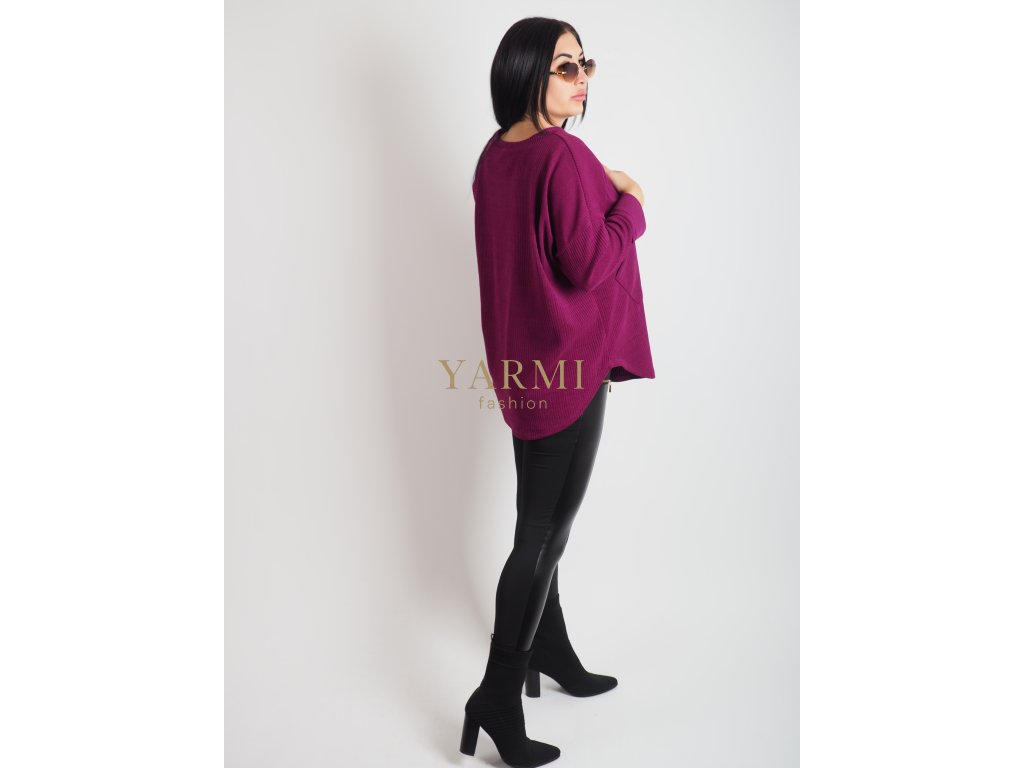 Pohodlný sveter v trendy fialovej farbe s voľným strihom.