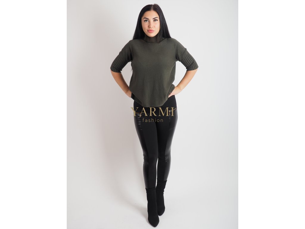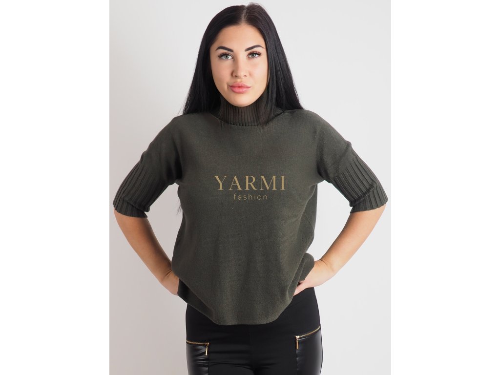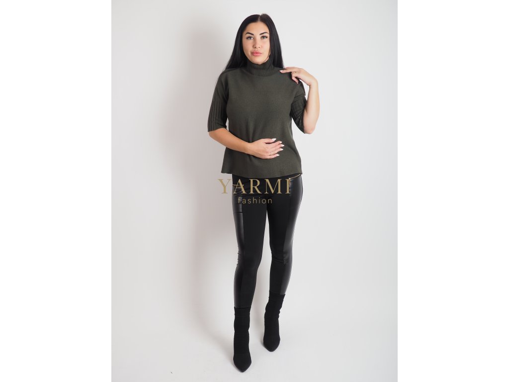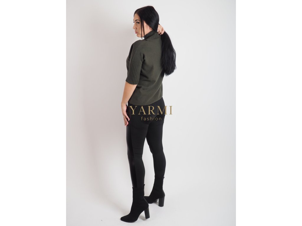 Dámsky khaki sveter s krátkym rukávom a stojačikom