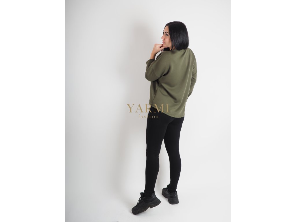 Dámska zelená mikina v klasickom strihu so sťahovaním v spodnej časti a príjemným materiálom na každodenné nosenie.