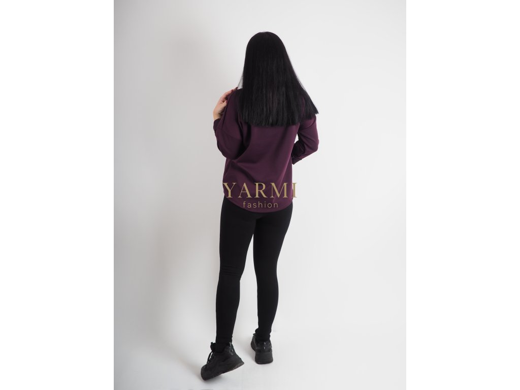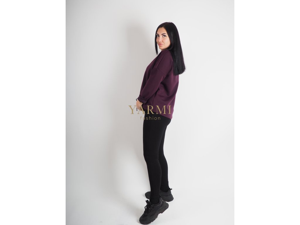 Dámska fialová mikina v klasickom strihu so sťahovaním v spodnej časti a príjemným materiálom na každodenné nosenie.