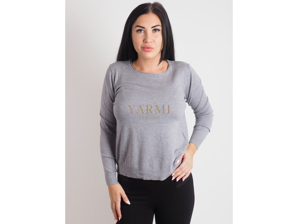 Dámsky sivý basic sveter s dlhým rukávom