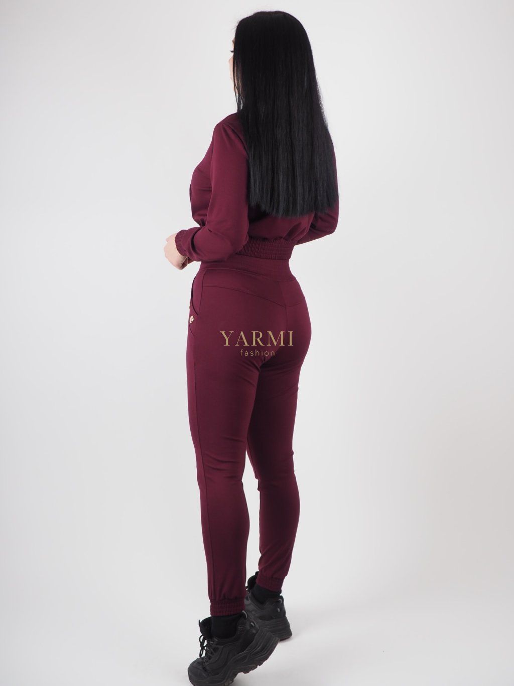 Elegantný dámsky komplet Milano v bordovej farbe s bundou a nohavicami. Luxusný a sebavedomý outfit do mesta aj na večer.